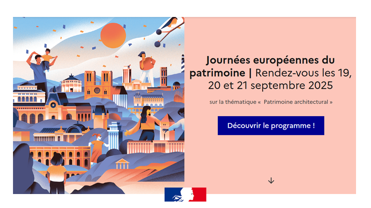 Les Journées européennes du patrimoine vous donnent rendez-vous les 19, 20 et 21 septembre 2025 autour du thème "Patrimoine architectural" qui sera l'occasion de mettre en lumière les réalisations artistiques et techniques de l'architecture.