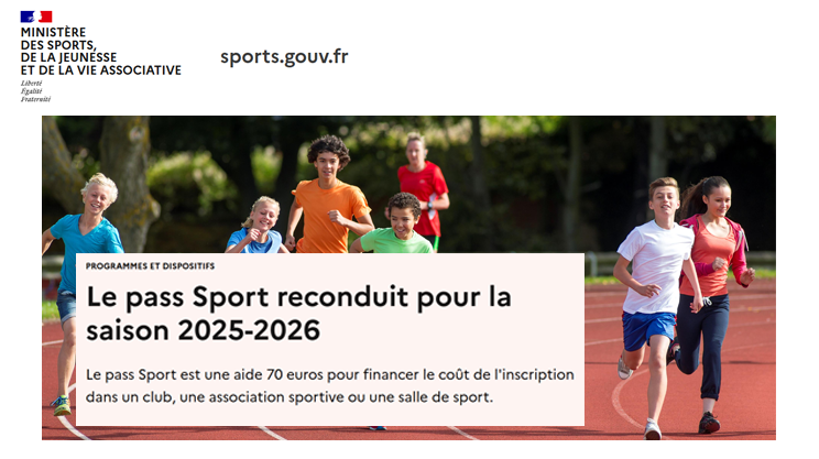 La rédaction de sports.gouv.fr vous informe que le pass Sport est reconduit pour la saison 2025-2026, il permet de bénéficier d'une de aide 70 euros pour financer le coût de l'inscription dans un club, une association sportive ou une salle de sport.
