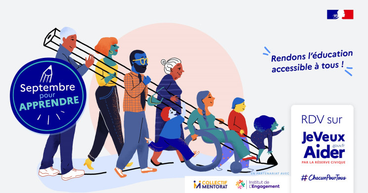 La plateforme JeVeuxAider.gouv.fr lance pour la sixième année consécutive Septembre pour apprendre. Cette opération propose d’agir bénévolement en faveur de l’égalité des chances, pendant tout le mois de septembre.